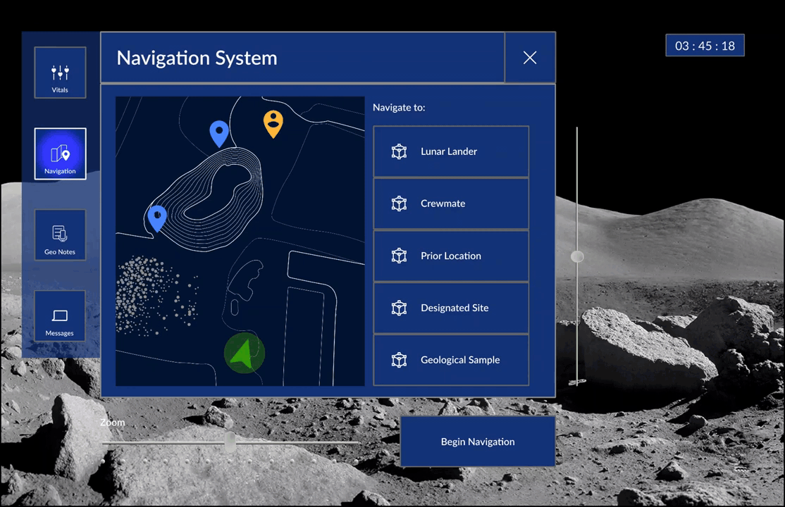 ○ Traverse lunar landscape with immersive, real time navigation path.