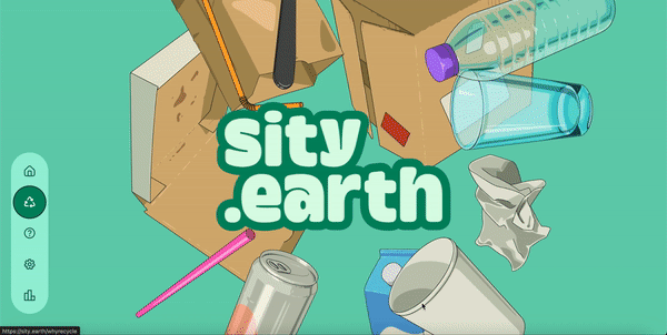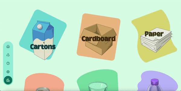 The landing page is the first thing users see. It should capture the user's eye and represent our mission of demystifying the recycling process. Inspired by the Great Pacific Garbage Patch, we were drawn to the idea of spinning trash: both a mesmerizing, striking visual and a representation of how prominent the world's waste problem is. The circular nature of the spinning trash also references the shape of the earth.