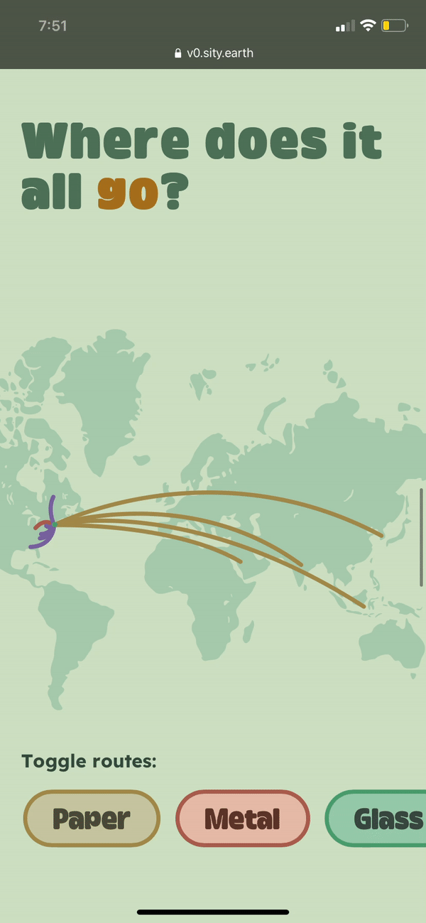 The final design will have interactive maps for users to understand the footprint of their waste and visuals to guide users through the recycling process. The primary features are listed below​: