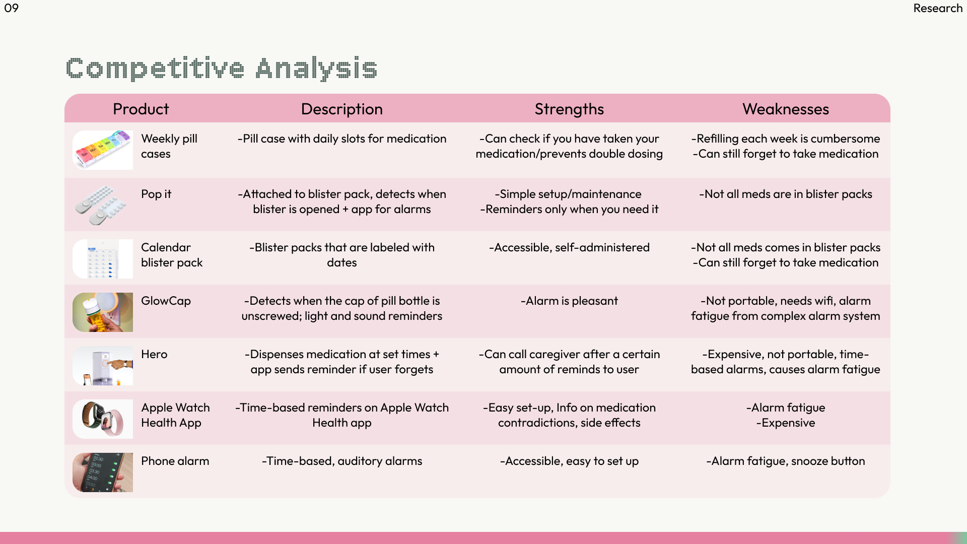 I started off with a competitive analysis not only to understand what products were out there but also to gain inspiration and identify design opportunities.